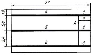 Необходимо рассчитать осветительную установку, показанную на рис. 3, на наименьшую освещенность Е=300 лк при КЗ=1,5. светильники ЛДР с лампами ЛБ, h=4 м.