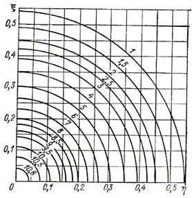 Координата x, так же как входящие в формулу значения r и r3, определяются по таблице 6 в функции отношения x : h и угла q. Если изолюксы на условной плоскости даны для двух квадрантов, то для сочетания параметров, слева от жирной линии (табл. 6) следует пользоваться нижним квадрантом.