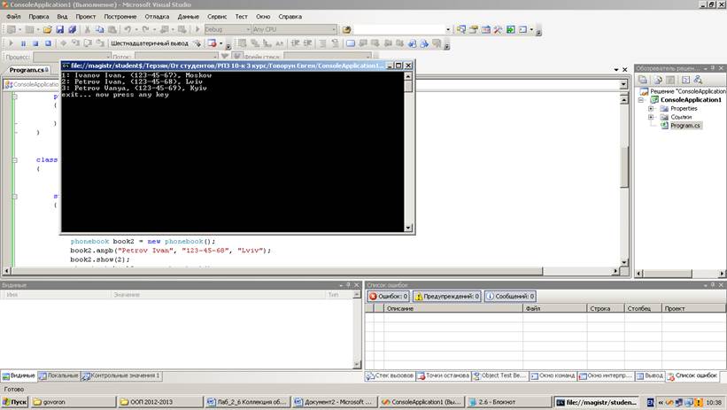 Назначение: программирование класса с встроенными системными коллекциями. Выполнение операций доступа к элементам коллекций. Создание собственного класса-коллекции Проверка работоспособности созданного класса.