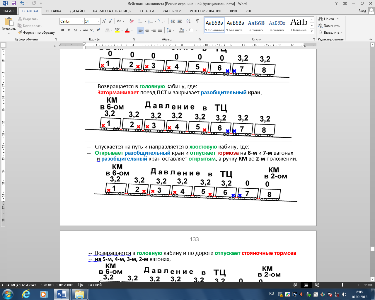 -- Доложить ДЦХ: ,, Диспетчер! Машинист № маршрута. Утечку воздуха из ТМ устранил перекрытием концевых кранов между 6-м и 7-м вагонами. Буду следовать с установленной скоростью, на ближайшей станции высаживаю пассажиров.