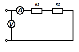4. Начертить схему цепи последовательного включения реостатов, изображенную на рисунке 2.