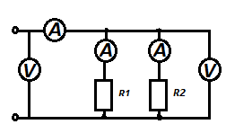 7. Начертить схему цепи параллельного включения реостатов, изображенную на рисунке 4.