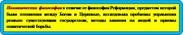 · Политическая философия Макиавелли была вызвана изменениями в политике Флоренции и Италии в целом, где назрел кризис нравственных ценностей. Макиавелли чутко уловил тенденцию разрыва в нравственности между двумя модальностями морали: то, что есть, и то, что должно быть. Макиавелли возвел нравственный кризис в новый политический принцип - политический реализм.
