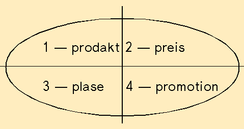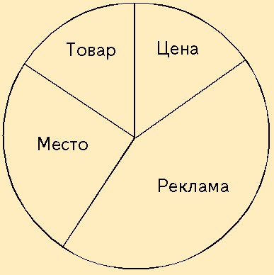 Рис. 7.8. Обобщенное представление маркетинговой смеси: 1 ¾ рrodakt (товар); 2 ¾ рreis (цена); 3 ¾ рlase (место продажи); 4 ¾ рromotion (стимулирование сбыта)