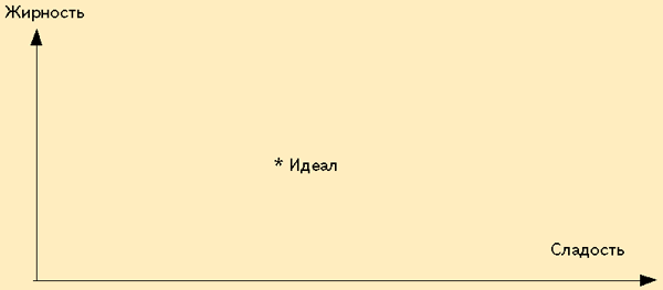 Пусть ваша фирма производит и реализует мороженое на рынке Барнаула. Установите, сколько различных сортов мороженого реализуется на этом рынке. Определите место каждого из них в системе координат «сладость», «жирность» относительно идеального варианта. Что бы вы порекомендовали фирме сделать для приближения к идеальному варианту? Какое бы из потребительных свойств мороженого вы вынесли еще в схему его позиционирования?