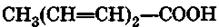 Она имеет две сопряженные друг с другом и с карбоксильной группой двойные связи, имеющие транс-конфигурацию; является прекрасным консервантом для многих пищевых продуктов: овощных консервов, сыра, маргарина, фруктов, рыбных и мясных продуктов.