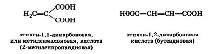 Малеиновая и фумаровая кислоты.Простейшими из двухосновных кислот, содержащих этиленовую связь, являются два структурных изомера: