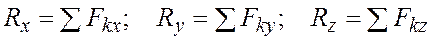 Равнодействующую системы сходящихся сил можно определить аналитическим способом, который основан на проецировании сил системы и равнодействующей на выбранные оси координат, начало которых находится обычно в точке схода сил: