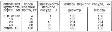 Крупнозернистые материалы (зерна более 5 мм) засыпают в мерные сосуды вместимостью 5, 10, 20 и 50 л совком с высоты 100 мм без последующего уплотнения. Мелкозернистые материалы (зерна менее 5 мм) насыпают в мерный сосуд вместимостью 1 л с помощью стандартной воронки (рис.2.4.1).