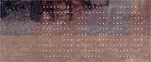 2.Микроперфорация. Это новый (с 2004 года) признак подлинности купюр, расположенный на банкнотах 100, 500, 1000 и 5000 рублей. При рассмотрении банкноты против источника света, на ней видно цифровое обозначение номинала, сформированное микроотверстиями, которые выглядят яркими точками. Бумага в месте расположения микроотверстий не должна восприниматься шероховатой на ощупь.