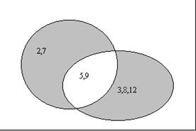 Пример: А = {2, 5, 7, 9}, В = {3, 5, 8, 9, 12}.