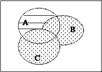 Если множества А, В и С пересекаются лишь попарно, т. е. АÇВÇС=Æ, то подсчет можно вести, как и прежде: сначала сложить п(А)+п(В)+п(С), а затем вычесть число тех элементов, которые подсчитаны дважды, т. е. вычесть число n{AÇ B}+n(AÇ C)+n(BÇ C). Если же множество АÇВÇС¹Æ,, то его элементы оказались неучтенными: сначала их трижды учли, когда складывали п(А}+п (В)+п(С), а затем трижды отнимали их, вычитая n{AÇ B}+n(AÇ C)+n(BÇ C).
