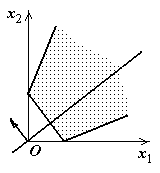 Каждое ограничение-неравенство системы (1.2)задает полупространство п-мерного пространства, являющееся выпуклым множеством. Множество планов, удовлетворяющих системе ограничений ЗЛП (1.2), представляет собой пересечение конечного числа полупространств и потому является выпуклым. Отсюда следует, что множество планов ЗЛП выпукло.