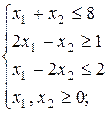 Пример 1.1. Цех выпускает два вида продукции, используя два вида полуфабрикатов. Продукция используется при комплектовании изделий, при этом на каждую единицу продукции первого вида требуется не более двух единиц продукции второго вида. Нормы расхода полуфабрикатов каждого вида на единицу выпускаемой продукции, общие объемы полуфабрикатов и прибыль от единицы каждой продукции представлены в табл. 1.1. Определить план производства, доставляющий максимум прибыли.