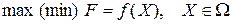 3) условия (или систему ограничений), налагаемые на неизвестные величины. Эти условия следуют из ограниченности ресурсов, которыми располагает общество в любой момент времени, необходимости удовлетворения насущных потребностей, условий производственных и технологических процессов. Ограниченными являются не только материальные, финансовые и трудовые ресурсы. Таковыми могут быть возможности технического, технологического и вообще научного потенциала. Нередко потребности превышают возможности их удовлетворения. Математически ограничения выражаются в виде уравнений и неравенств. Их совокупность образует область допустимых решений (область экономических возможностей). Объединение всех условий (ограничений), налагаемых на неизвестные (искомые) величины xj задачи, обозначим Ω (х Î Ω). При таких обозначениях модель задачи математического программирования примет вид: