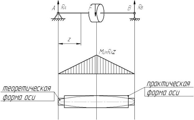 3) Из условия прочности оси в опасном сечении получают её теоретическую форму.