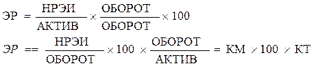 Преобразуем формулу экономической рентабельности, умножив ее на ОБОРОТ/ОБОРОТ = 1. От такой операции величина рентабельности не изменится, зато проявятся два важнейших элемента рентабельности: коммерческая маржа (КМ) и коэффициент трансформации (КТ).