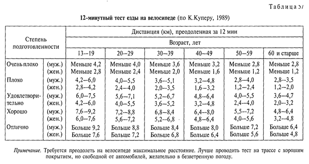 Определить степень физической подготовленности занимающихся можно с помощью 12-минутного теста езды на велосипеде (табл. 9).