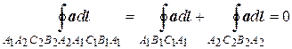 Действительно, рассмотрим два замкнутых контура (A1B1C1A1) и (A2B2C2A2), охватывающих по одному разу вихревой шнур L (рис. 8.3). Соединим точки A1 и A2 этих контуров линией (A1A2) и рассмотрим получившийся новый замкнутый контур (A1A2C2B2A2A1B1C1A1), в котором линия (A1A2) повторяется два раза. Этот контур можно стянуть в одну точку, не пересекая границ поля. Следовательно, циркуляция поля a по этому контуру будет равна нулю. При этом, интеграл по линиям (A1A2) и (A2A1) взаимно уничтожаются. Поэтому можно написать: