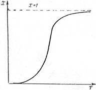 | Рис. 7. Зависимость скорости r простой обратимой эндотермической реакции A↔R-Q от температуры Т Т (α1<α2< α3). | Рис.8.Зависимость степени превращения α от температуры для простой обратимой реакции A→R±Q |
