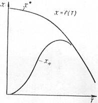 Рис. 10. Зависимость степени превращения αот температуры Т для простой обратимой эндотермической реакции A↔R-Q (αp, αф– степень превращения соответственно равновесная и фактическая).