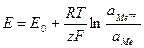 Уравнение для расчета потенциала амальгамного электрода имеет вид: