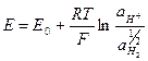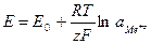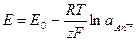 Применяя уравнение Нернста с учетом выбранного стандартного состояния, получаем: