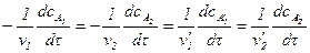 Поскольку в реакциях вещества участвуют в стехиометрических соотношениях, за скорость реакции может быть принята производная от концентрации любого из реагирующих веществ по времени: