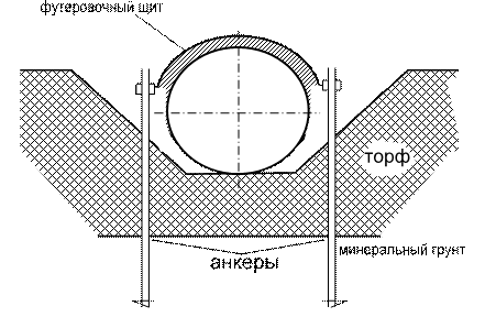При утяжелении трубопровода грунтом последний обрабатывают специальным связывающим материалом – отходом переработки нефти. Грунт, смешанный с таким материалом, через некоторое время образует прочный конгломерат и схватывается как с трубой, так и со стенками траншеи.