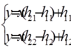 Прямая A2A2 , проходящая через точки (0; h21) и (1; h22), удовлетворяет уравнению у = х(h22-h21)+h21.