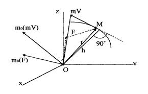 m0(mV) = r(mV) при этом вектор m0(F) направлен перпендикулярно плоскости, проходящей через центр О и вектор F,а вектор m0(mV) -перпендикулярно плоскости, проходящей через центр О и вектор mV.