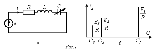 Пусть имеет место цепь на рис. 1,а, питающаяся от источника несинусоидальной ЭДС, в которой емкость конденсатора может плавно изменяться от нуля до бесконечности.