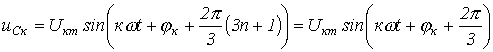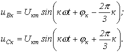 Тогда с учетом, что , для к-х гармонических напряжений фаз В и С соответственно можно записать: