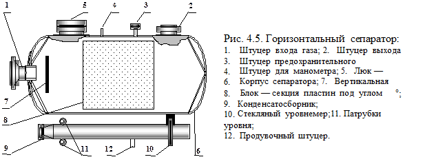 Для механической очистки газа применяются сепараторы 4-х типов: гравитационные, инерционные, адгезионные, смешанные.
