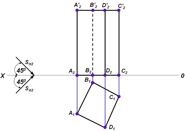 Строим тень от всех точек верхнего основания. Ап2; Вп2; Сп2; Dп2.