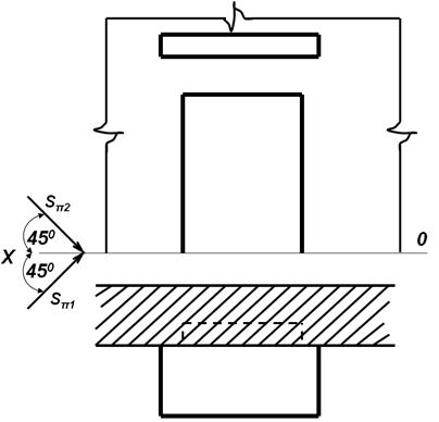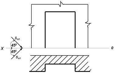 Из нижней левой точки плиты 12 проводим фронтальный световой луч до фасада. Тень будет проходить параллельно плиты через точку 1п2, которая определяется пересечением фронтального луча, проведенного под 450 из точки плиты 12.