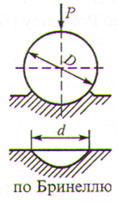 Твёрдость (НВ) определяют согласно диаметра отпечатка по таблицам, прилагаемым к прибору или по формуле НВ =F/S.