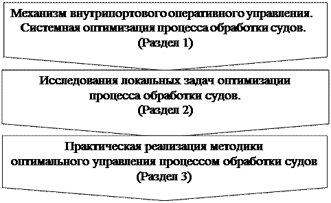 В разделе I «Концептуальные основы внутрипортового оперативного управления» исследуется производственно-экономическая деятельность портов (портовый бизнес) в качестве обобщенного объекта управления с выделением в его структуре локальных объектов – процессов грузоперевалки и обслуживания судов. Показано, что последний процесс играет ключевую роль в портовом производстве, в силу чего управление им должно осуществляться в режиме on line с использованием принципов ситуационного и скользящего планирования. Обсуждаться постановка обобщенной задачи оптимизации процесса обслуживания судов и подходы к ее решению.
