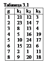 Пусть в рассматриваемом случае m=3. Перед реализацией плана на объекте необходимо рандомизировать варианты варьирования факторов, т.е. с помощью таблицы равномерно распределенных случайных чисел (литерат) или компьютерной программы для реализации процесса рандомизации определить последовательность реализации вариантов варьирования плана в Nm опытах. Пример рандомизации (g=8, m=3), приведен в таблице 3.1. Пусть, например, k1=8 при g=3; это значит, что третий вариант варьирования реализуется в эксперименте восьмым по порядку. Результаты наблюдений эксперимента соответственно вариантам варьирования плана записывают в столбцы
