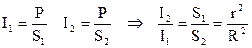 Из рисунка видно, что интенсивность будет уменьшаться с увеличением расстояния от источника, поскольку та же мощность будет приходить на все большую площадку. Из подобия фигур видно, что