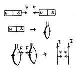 - Сонаправленные токи притягиваются, противоположно направленные - отталкиваются.