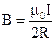Величину вектора B вычислить сложно. Пока мы будем пользоваться формулой для величины B в центре витка с током. Эта величина пропорциональна силе тока и обратно пропорциональна радиусу витка (чем дальше источник поля, тем меньше поле), и вычисляется по формуле