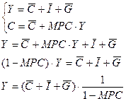 − мультипликатор государственных расходов. Показатель больше единицы.