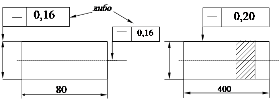 Если допуск относится к оси, то стрелочка обращена к этой оси или является продолжением размерной линии.
