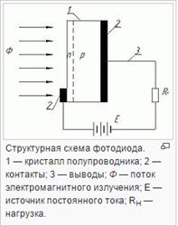 Фотодио́д — приёмник оптического излучения[1], который преобразует попавший на его фоточувствительную область свет в электрический заряд за счёт процессов вp-n-переходе.