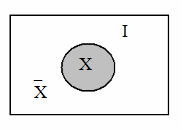 Дополнением множества X (до универсального множества I) называют множество `Х, определяемое из соотношения: `Х = I \ X.