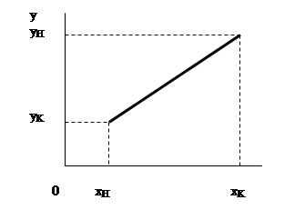 Уравнение (*) называется уравнением рабочей линии. Оно устанавливает связь между концентрациями распределяемого вещества (y,x), которые называются рабочими концентрациями во взаимодействующих фазах. В координатах y-x эта зависимость выражается прямой, крайние точки которой определяются концентрациями вверху и внизу аппарата (см.рис.)