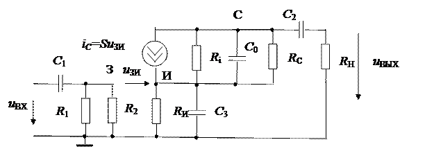 -источник тока iС=SuЗИ, отражающий усилительные свойства ПТ (S – крутизна переходной характеристики ПТ),