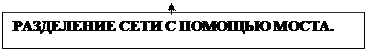 Мост – устройство объединения разнородных сетей. Мост осуществляет фильтрацию блоков данных из одной сети в другую на основе анализа адресов поступающих блоков данных. При необходимости осуществляется преобразование форматов передаваемых данных. Таким образом, производится разделение информационных потоков в рамках корп. сети. С помощью моста локальная сеть может быть поделена на два и больше сегментов меньших размеров с перераспределением информационных потоков между ними.