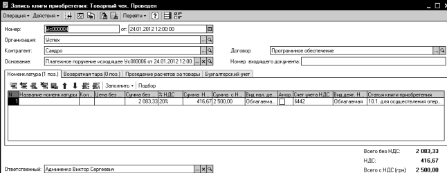 Рис. 3.24. Проводка по документу "Запись книги приобретения"
